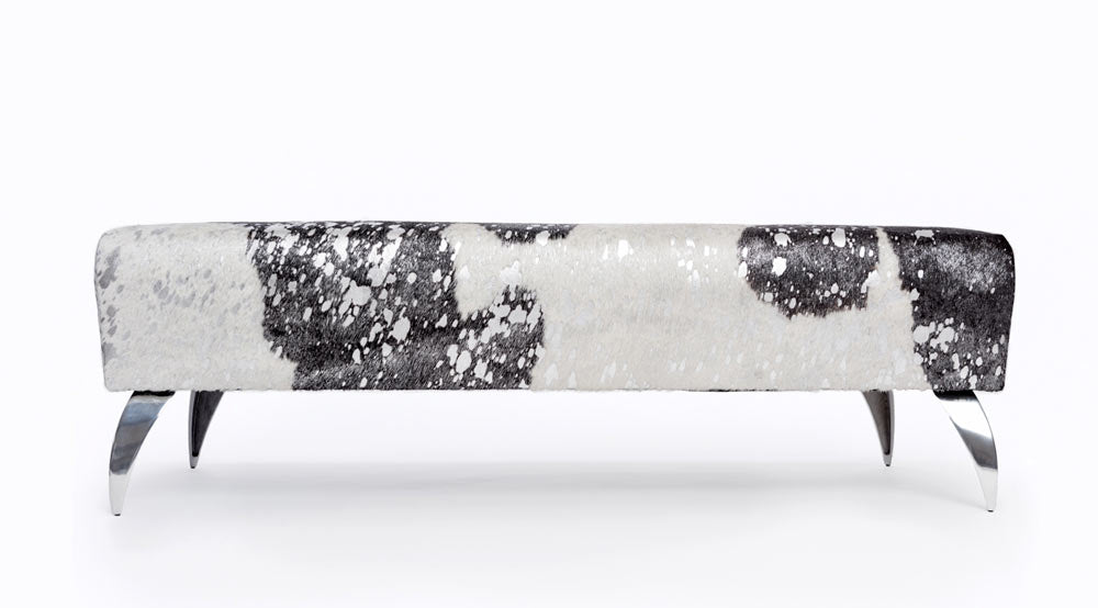 Cowhide Ottoman with Silver Metallic & Aluminium Legs 130x55x40cm