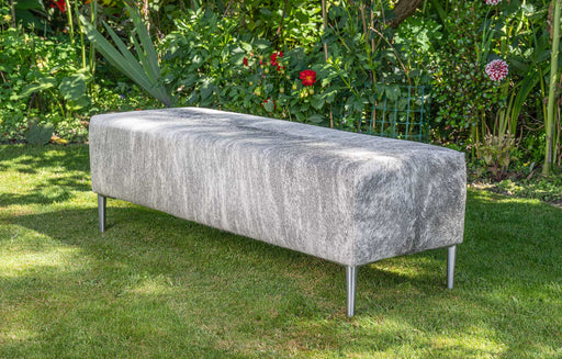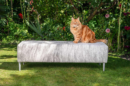 View full detailsLight grey cowhide long bench ottoman 120cm x 35cm x 40cm tall. This is a rare pale grey colour that is hard to get. Gorgeous Creatures make beauti...