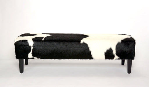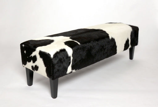 View full detailsBlack & white cowhide bench ottoman with wood legs 150cm x 45cm x 45cm tall. Gorgeous Creatures make beautiful custom made cowhide bench ottoma...