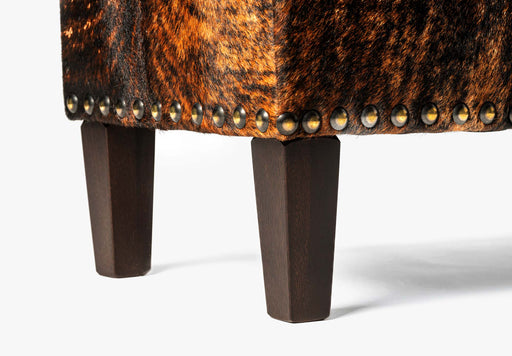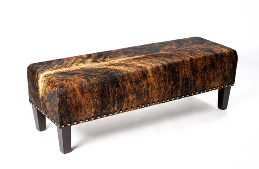 View full detailsA dark exotic brindle bench ottoman with wood legs 100cm x 40cm x 40cm tall. Gorgeous Creatures make beautiful custom made cowhide ottomans. Each o...