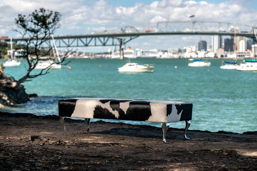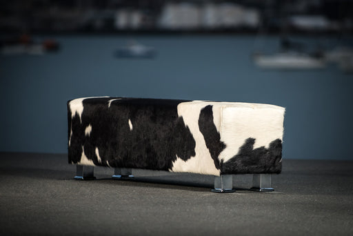 View full detailsBlack & white long bench cowhide ottoman 150cm x 55cm x 40cm tall. Made in New Zealand. Gorgeous Creatures make beautiful custom made cowhide b...