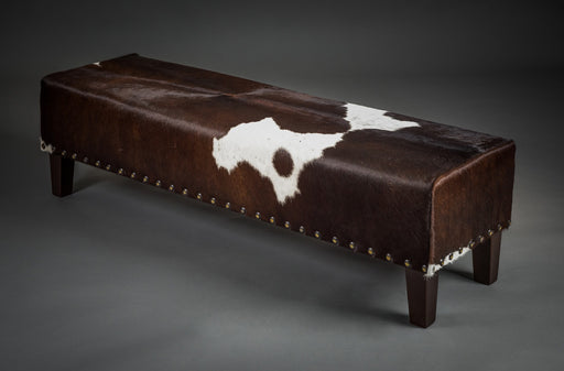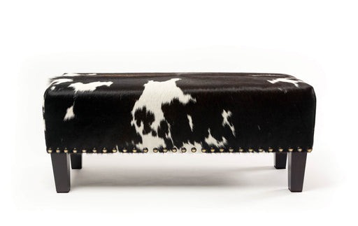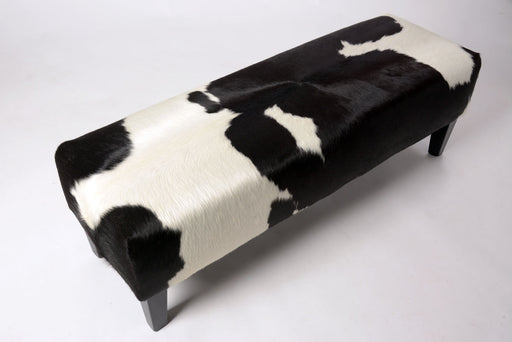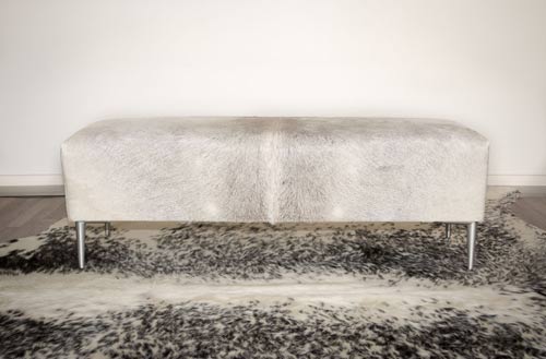 View full detailsCowhide long bench ottoman 110cm x 38cm x 38cm tall. Great for a hallway, entranceway or under a window as a window seat. Gorgeous Creatures make b...