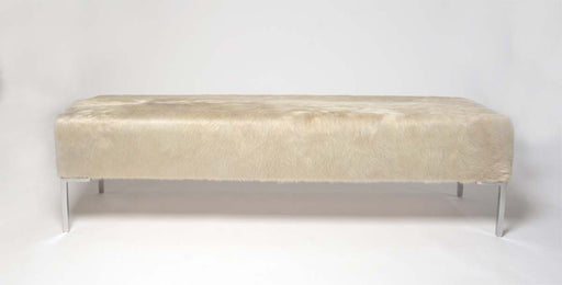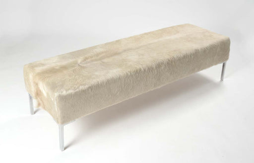 View full detailsA long off-white cowhide bench ottoman 146cm x 46cm x 41cm tall. Great for the end of your bed or a hallway. Gorgeous Creatures make beautiful cust...