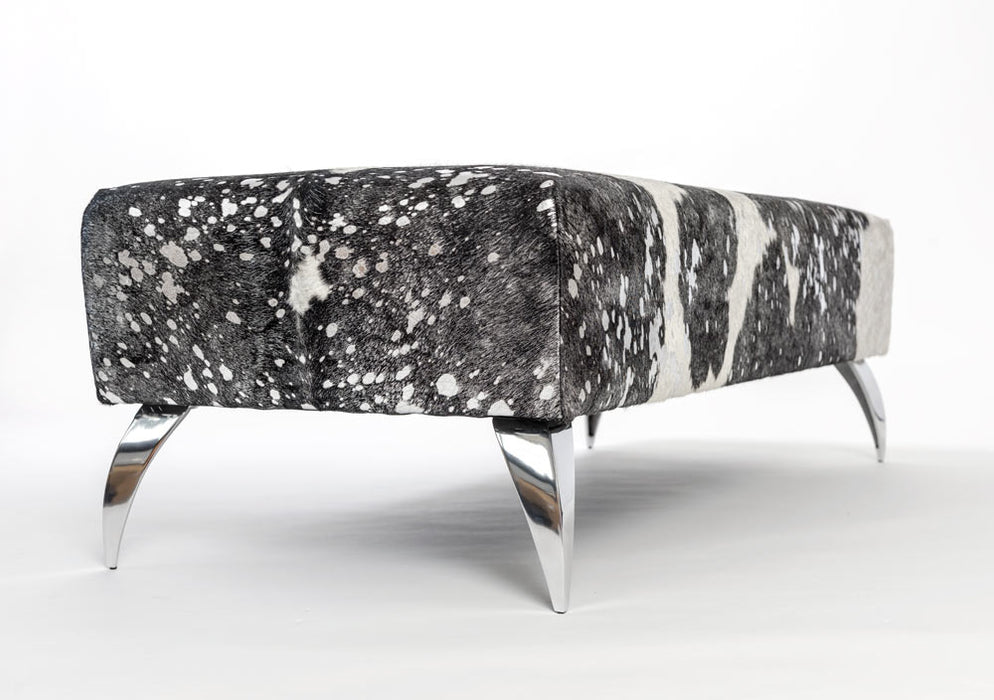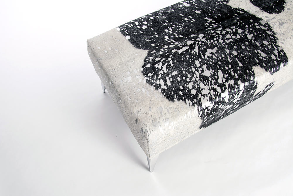 Cowhide Ottoman with Silver Metallic & Aluminium Legs 130x55x40cm