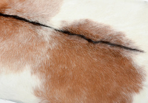 View full detailsA pretty brown and white goat skin rug with a black spine. Perfect as a small textural rug. These goat skin rugs can be used on the floor or draped...