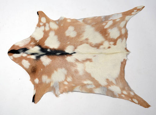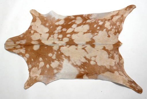 View full detailsA crazy spotty tan and creamy white goat skin rug. Try a soft textural accent rug for a smaller space. These goat skin rugs can be used on the floo...