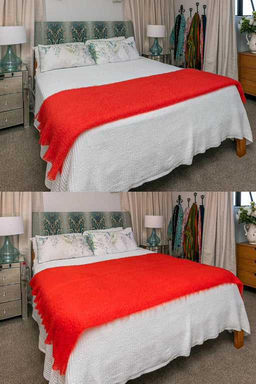 View full detailsA mohair blanket in hibiscus orange. A hot vibrant orange that calls for attention and gets it! Like an African sunset. Everyone loves this colou...