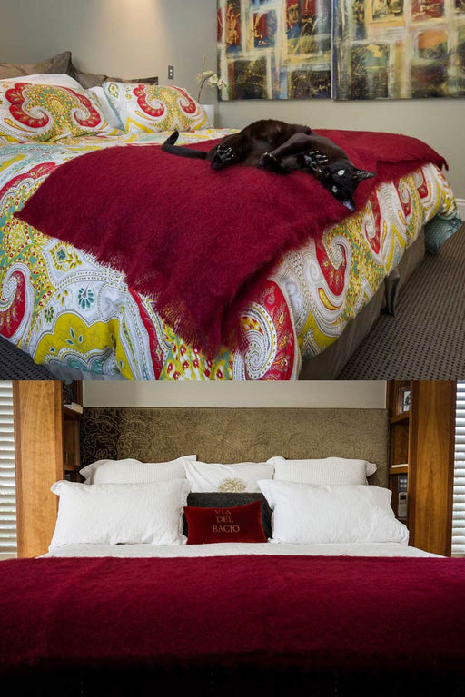 View full detailsThe very best selling dark red mohair wool blanket. Tamarind is a deep rich blue based red. And yes, cats love them, we couldn't keep him off! A b...