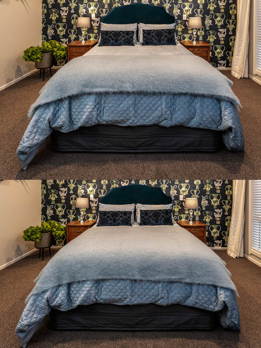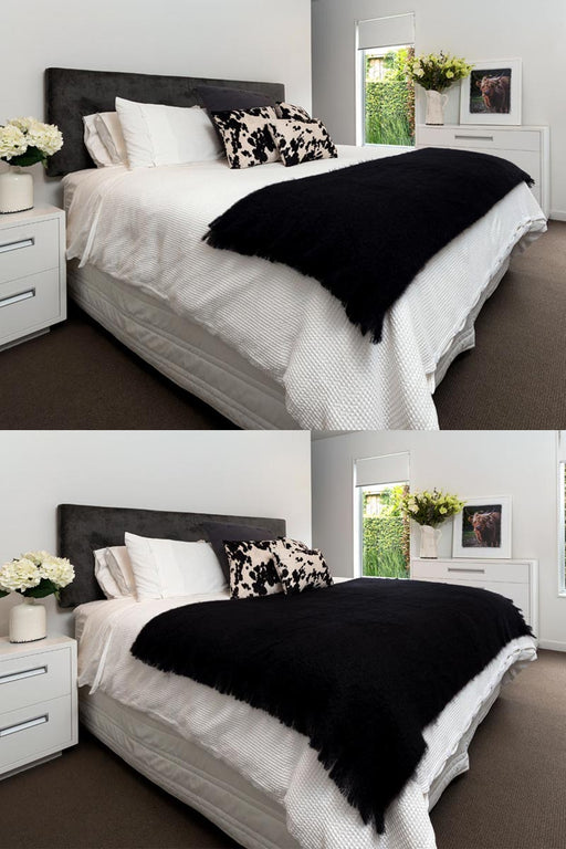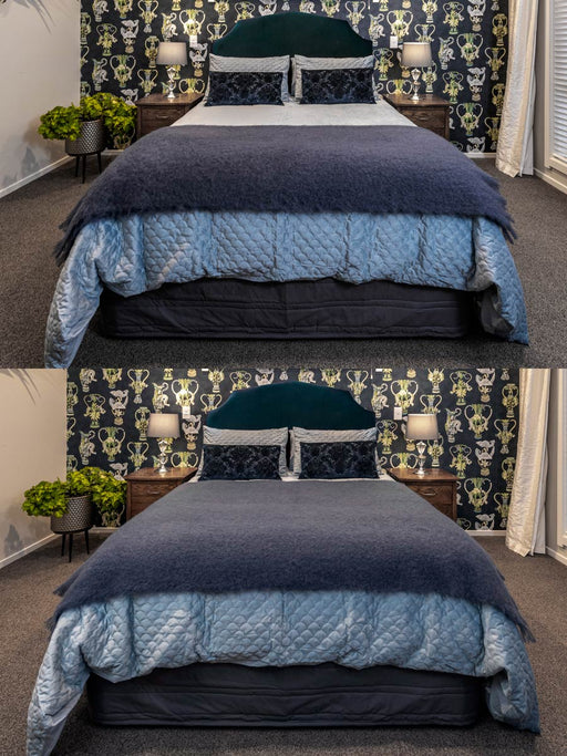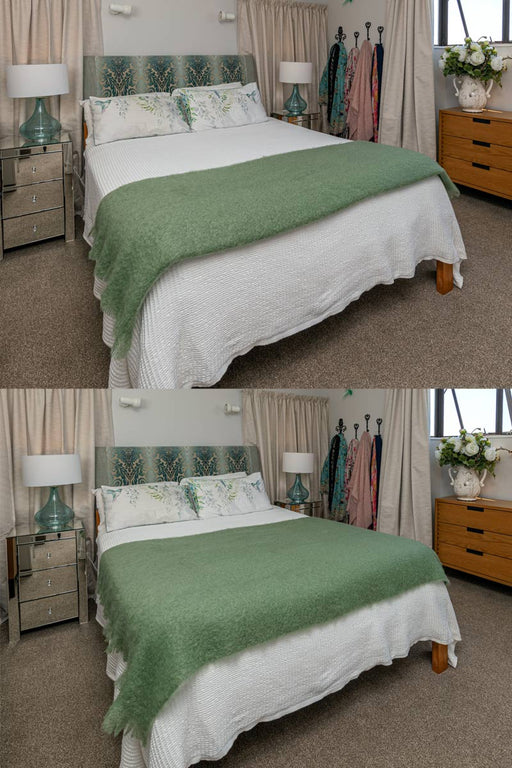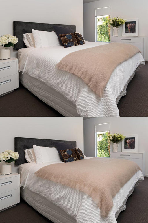 View full detailsThis makes a mohair blanket perfect for any season. Our blanket size works well on a Queen or King sized bed. Made in New Zealand.