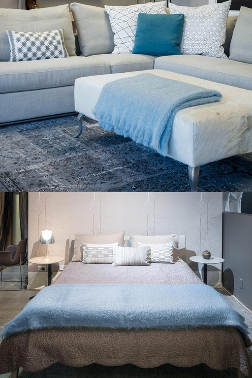 View full detailsA mohair blanket in glacier blue is a best seller, similar to a duck egg blue. As a soft neutral colour, this mohair blanket goes with so many inte...