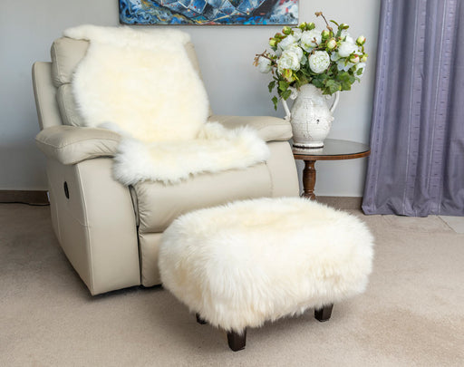 We can use different furniture leg options and can make footstool in other sheepskin colours like dyed black, chocolate brown or grey. Made in New Zealand, these small footstools can be sent anywhere in the world.