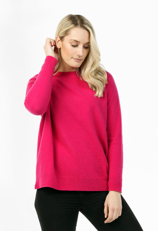 View full detailsThis soft lily pink wool knit sweater design has a high slightly widened round boat neck. A women's possum merino sweater with a shaped waist. This...