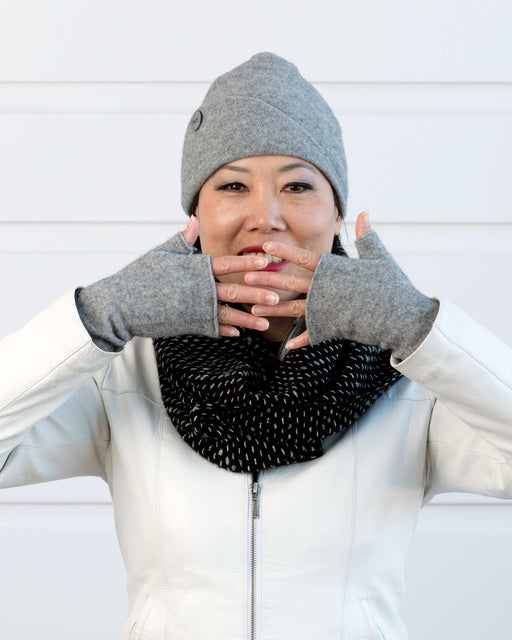 View full detailsPossum merino wool fingerless hand warmers. Silver grey is a timeless classic to dress up your winter wardrobe. What a great idea! Like gloves but...