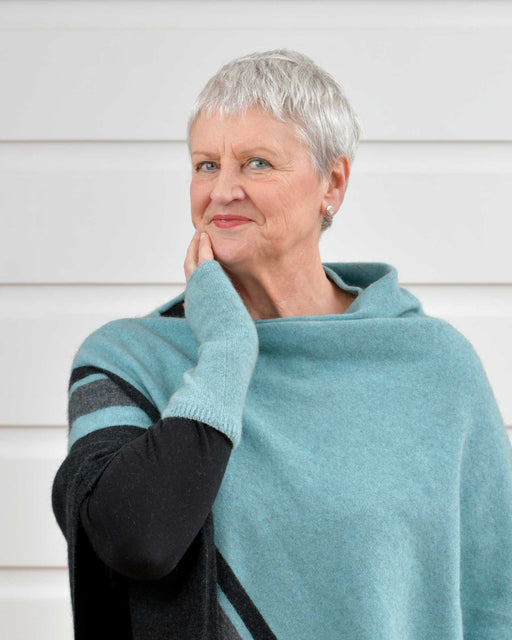 View full detailsThis light silver grey possum merino wool cape is gorgeous, and it looks even better teamed with the hand-warmers that match. ONE SIZE fits most wo...