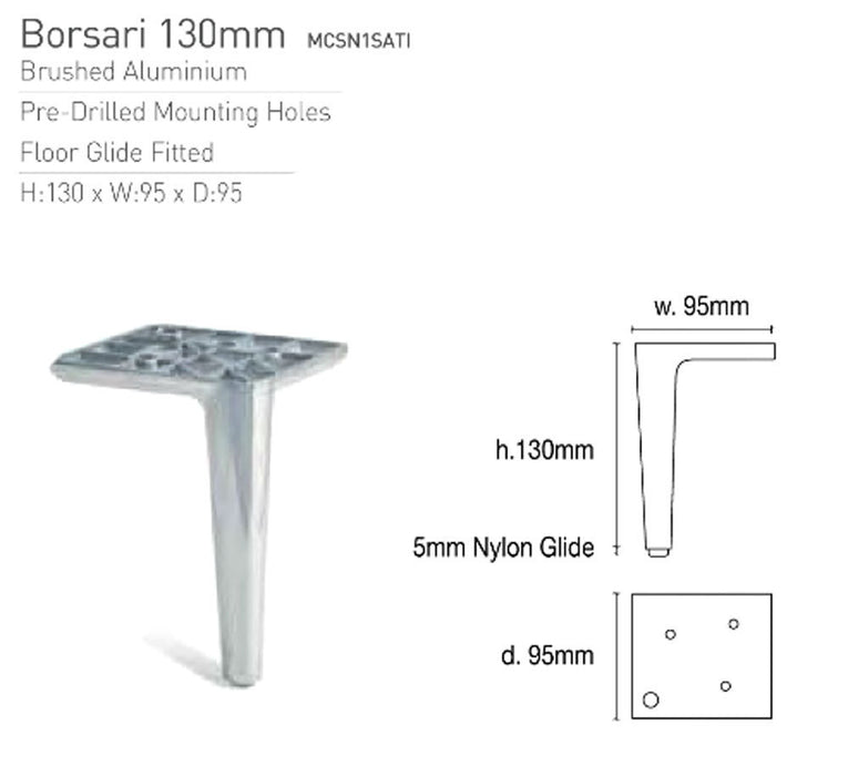 Borsari Aluminium Furniture Legs 13cm Tall - Brushed Matt