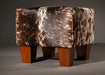 Cowhide Cube Ottoman with Low Wooden Legs 40x40x35cm