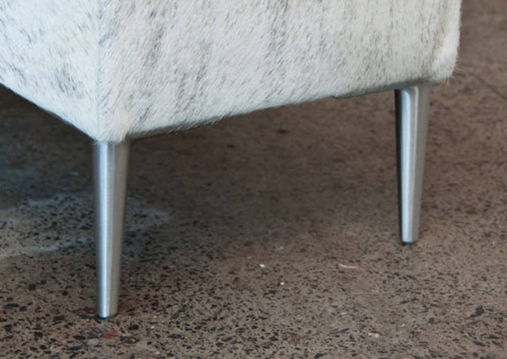 Light grey cowhide bench ottoman 120cm x 35cm x 40cm tall. This colour is rare and difficult to find.