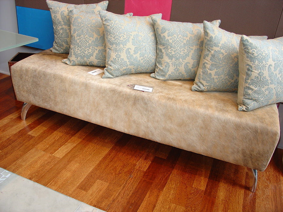 Gorgeous Creatures make beautiful custom made cowhide bench ottomans. Each one is unique. Made in New Zealand.