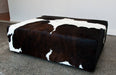 Chocolate brown & white cow skin ottoman extra large rectangle 114cm x 92cm x 38cm tall.