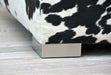 The furniture foot has two holes in the wood block so that screws can go through and up into the wood frame of any ottoman or sofa.