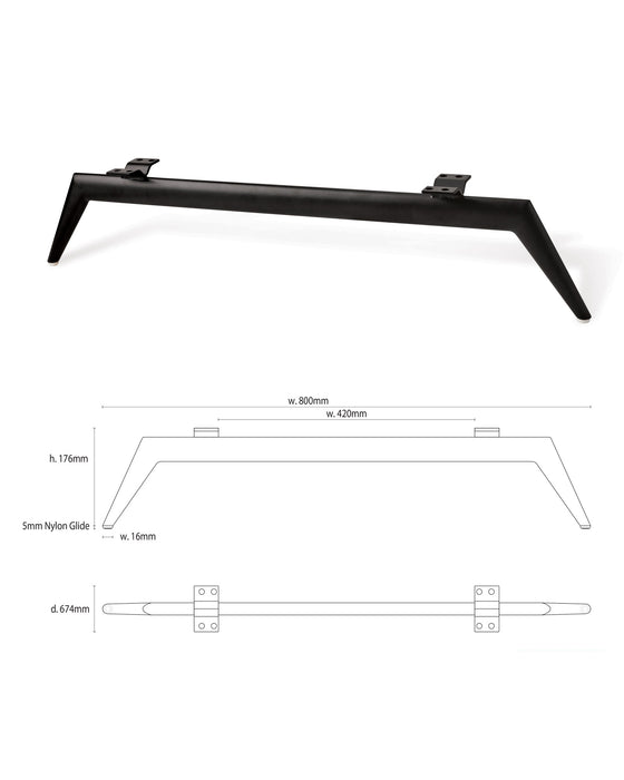 These new Gannon furniture legs are a crossbar style. Made in contemporary cast matte black aluminum 18cm tall and 80cm wide.