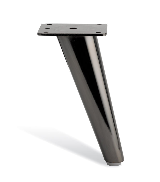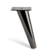 This retro Hipster metal furniture leg is shiny dark gun-metal nickel on aluminum. It is sleek at 18cm tall. The retro furniture leg angles outward.