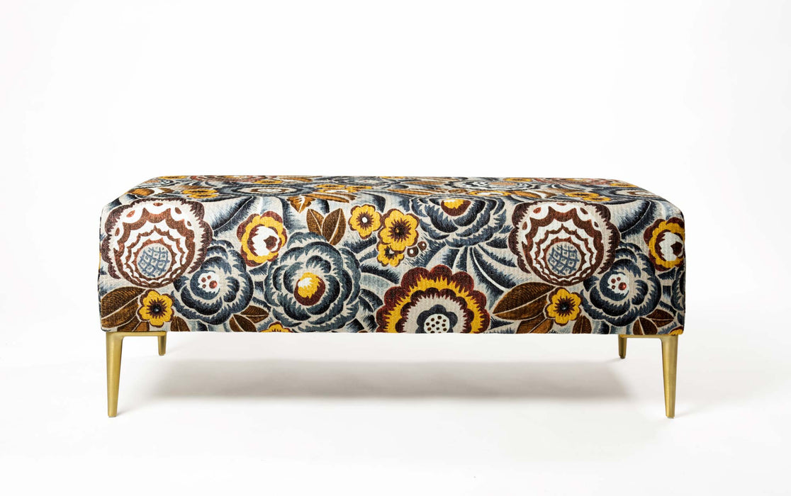 Laurie Floral Fabric Ottoman with Gold Legs 100x45x38cm