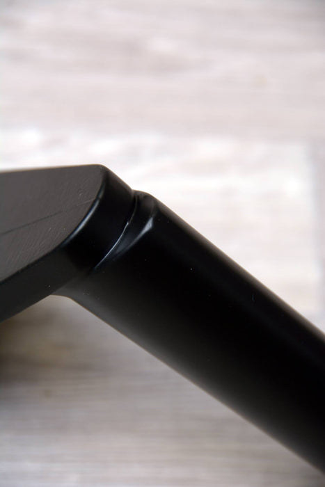 The anodized black surface is a matte finish. The furniture leg profile is a double curve or squashed oval like the shape of an eye.
