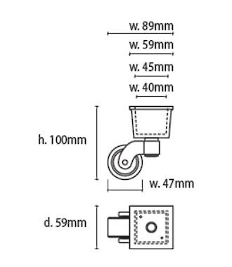 This square cup and caster wheel is ordered in as needed and takes 7-10 working days to arrive into our showroom before being dispatched to you, so please allow for this time. Other sizes are available in chrome and brass colours.
