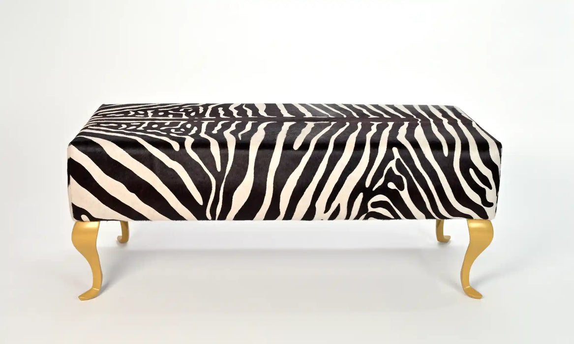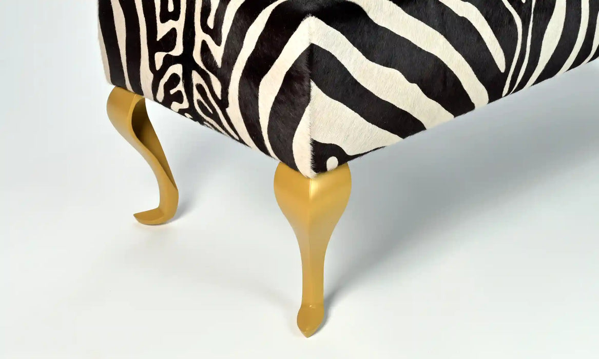 Zebra Ottoman with Gold Queen Anne Legs 110x45x46cm